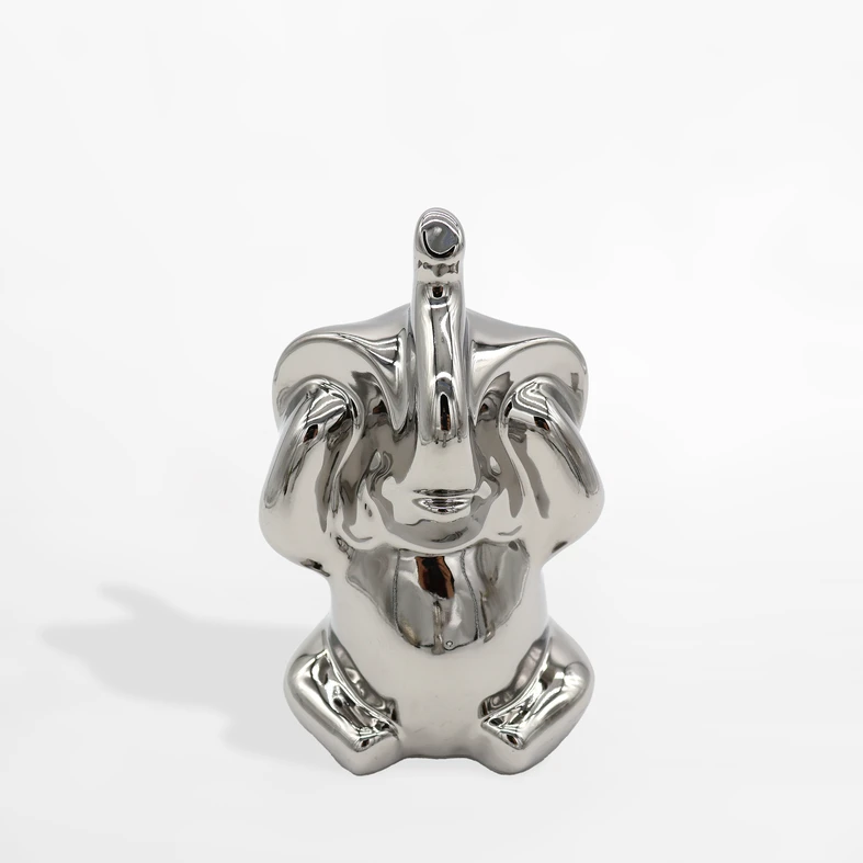 Dekoratívna strieborná figúrka SLON so zakrytými ušami 13,8 cm