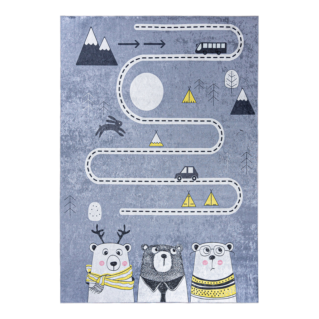 Ak je izba Vášho dieťaťa zariadená v škandinávskom štýle, sivý koberec MEDVEDE do nej dokonale zapadne.
