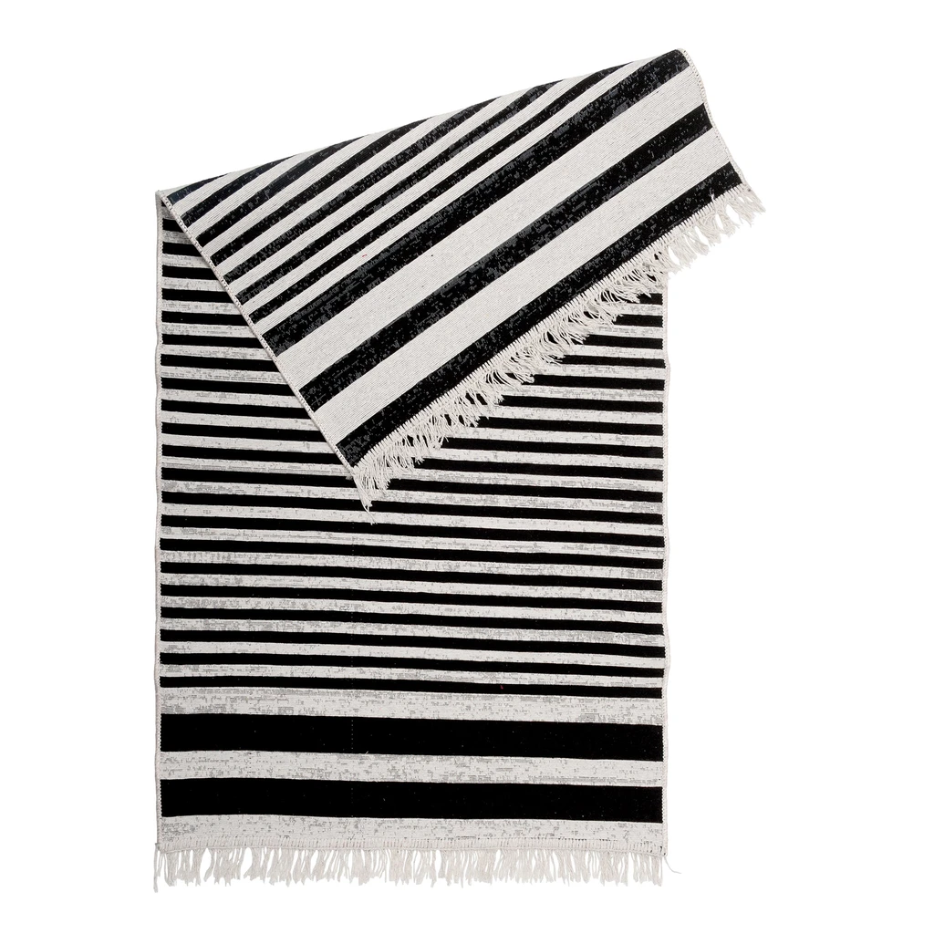 Koberec s bielo-čiernymi pruhmi BERGEN 80x150 cm