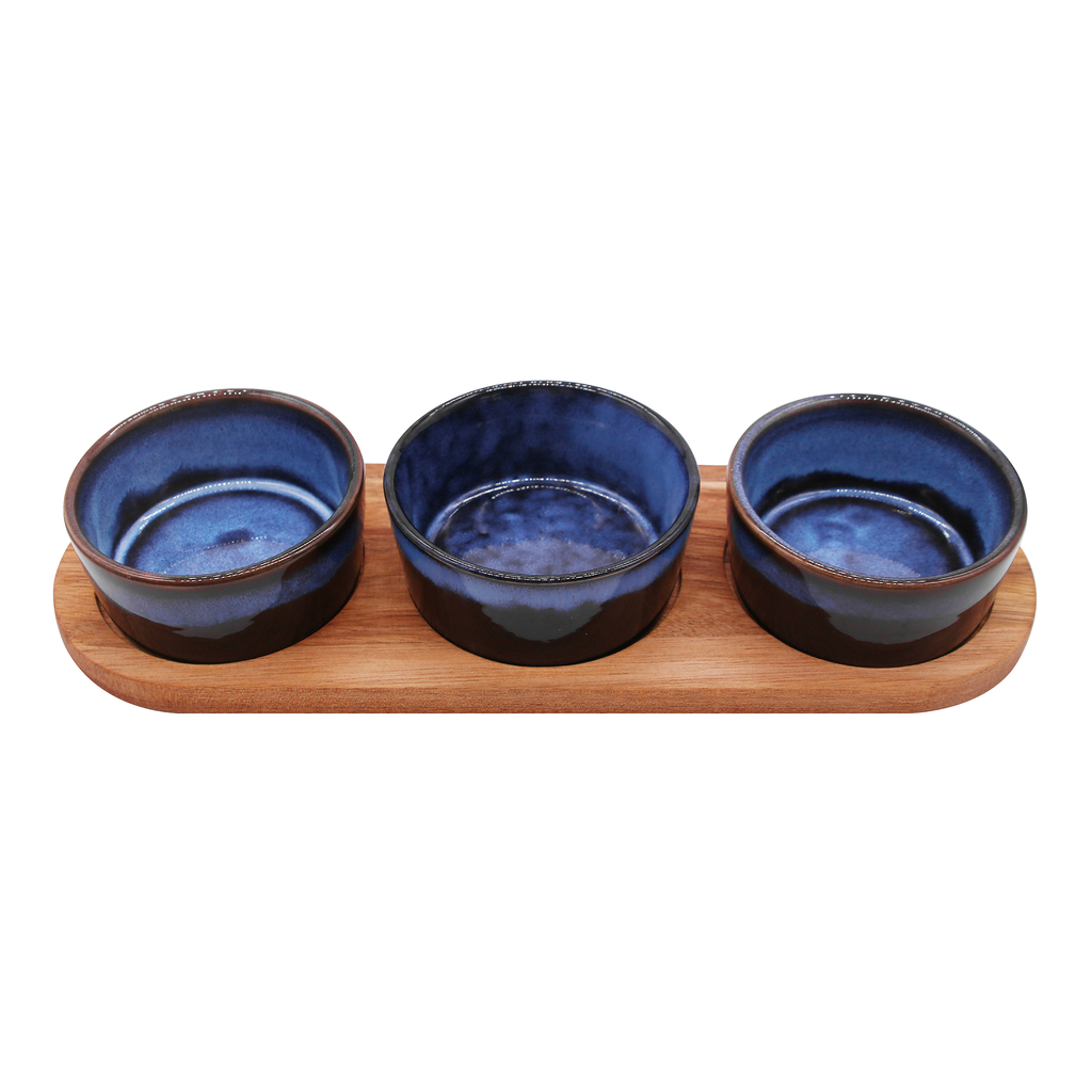 Súprava 3 misiek na akáciovom podstavci