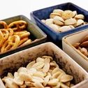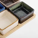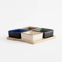 Súprava 4 misiek na štvorcovom bambusovom podstavci 19x19 cm