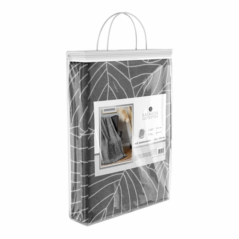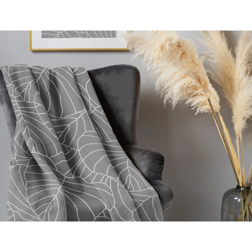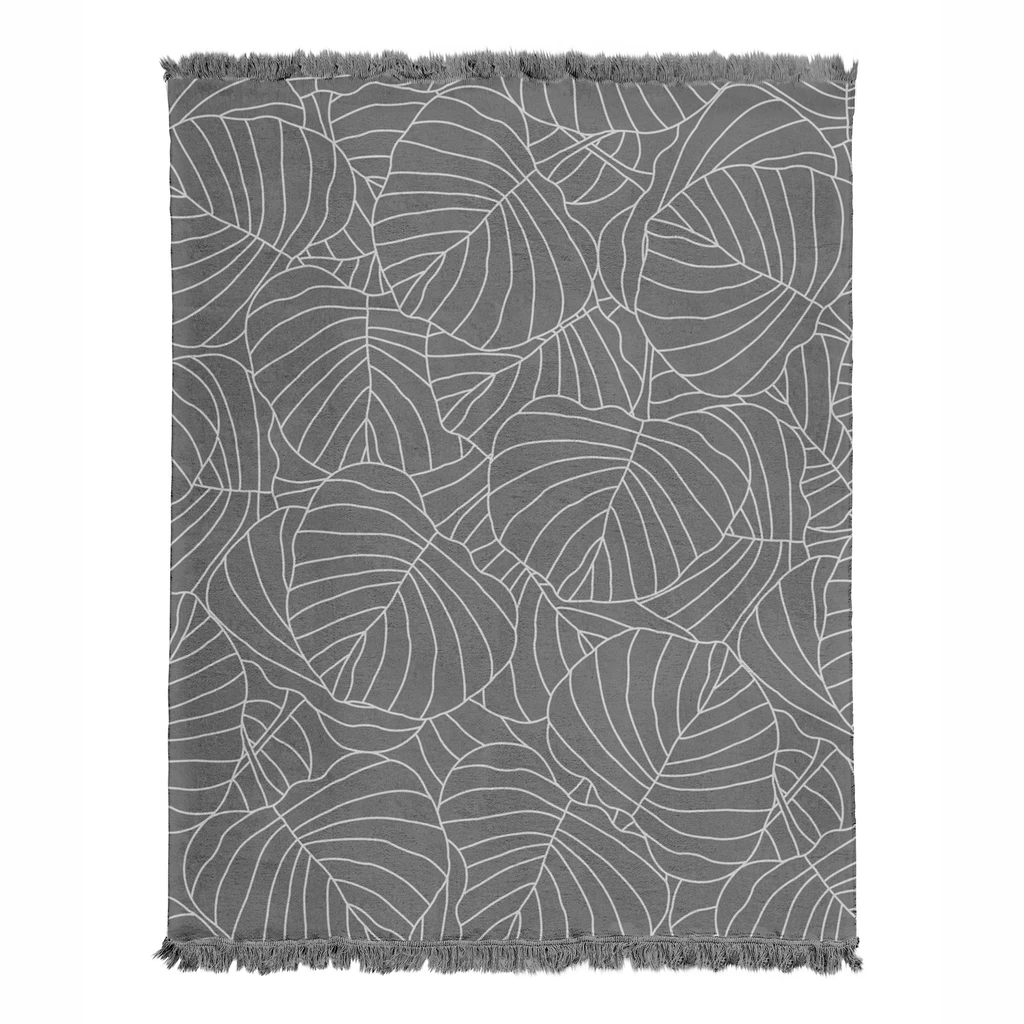 Bavlnená tmavosivá deka so vzorom listov vás pritúli počas chladnej noci!