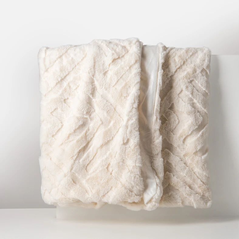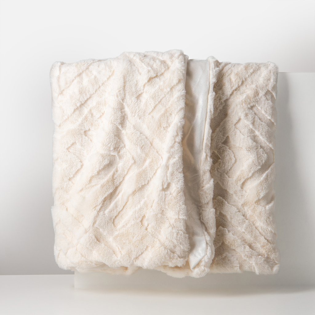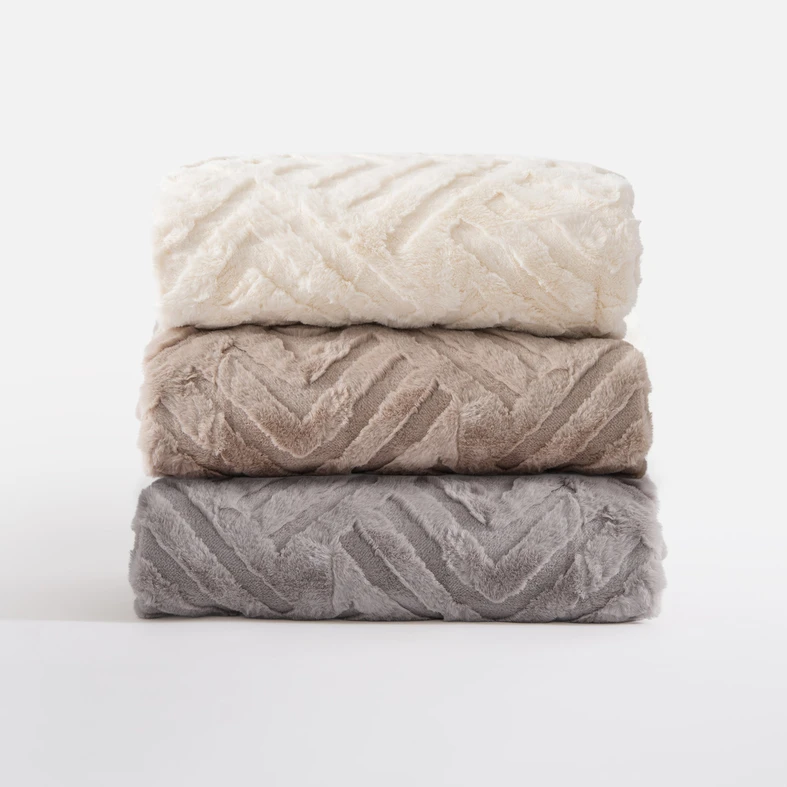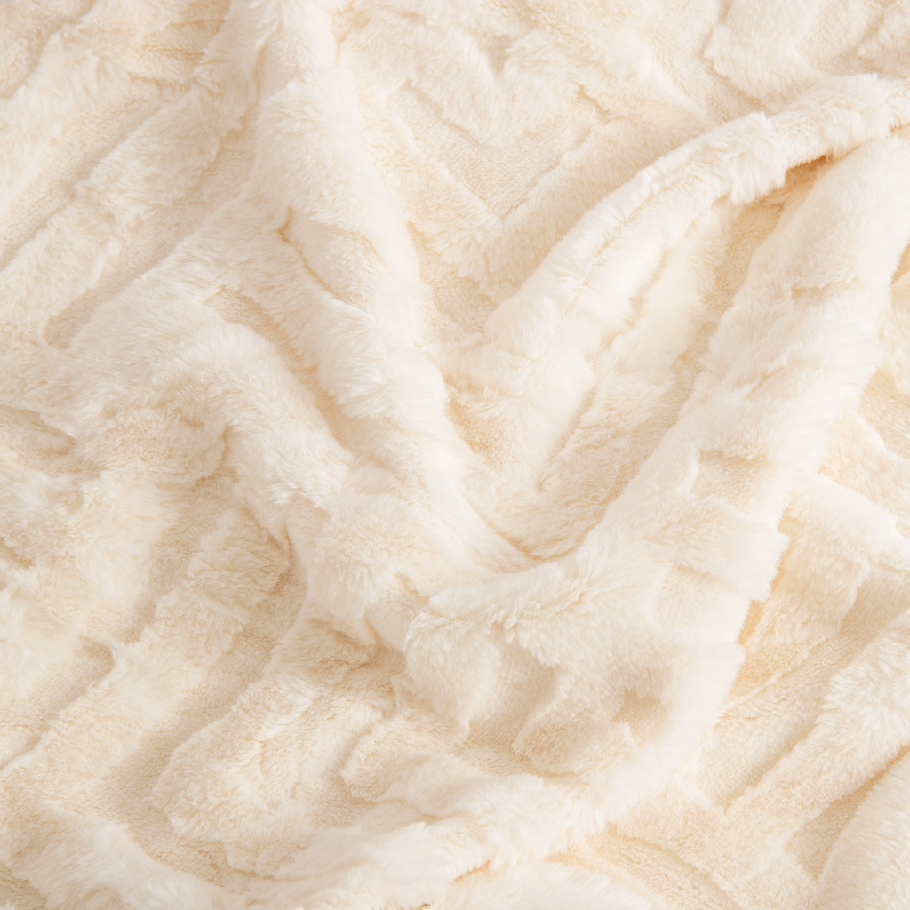 • Polyesterová vrchná tkanina imituje králičiu kožušinu. Deka je mäkká na dotyk.