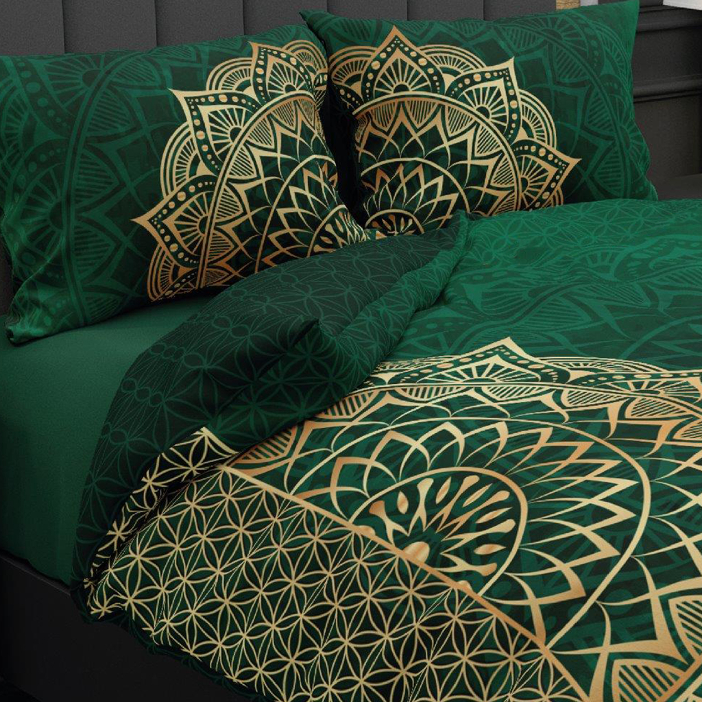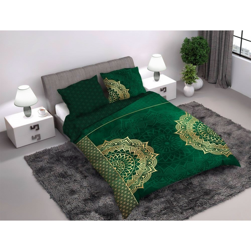 Súprava posteľnej bielizne z bavlneného saténu zelená MANDALA 160x200 cm