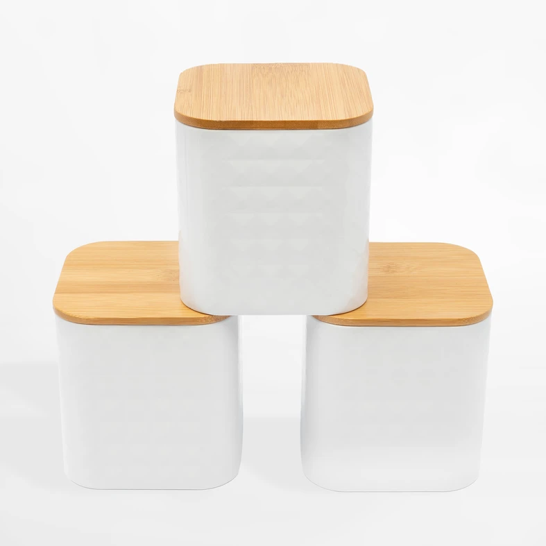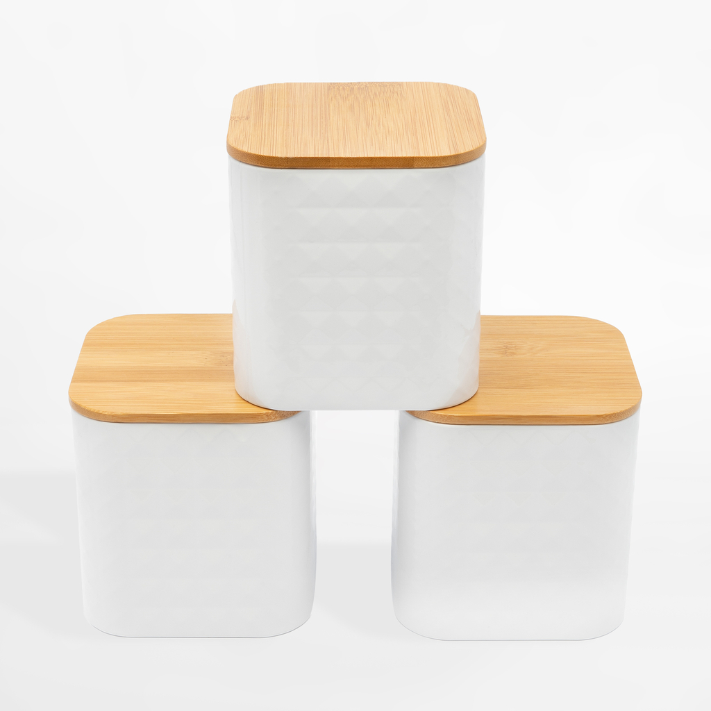 Sada 3 bielych nádob GEOMETRIC 11,5x11,5x12,3 cm