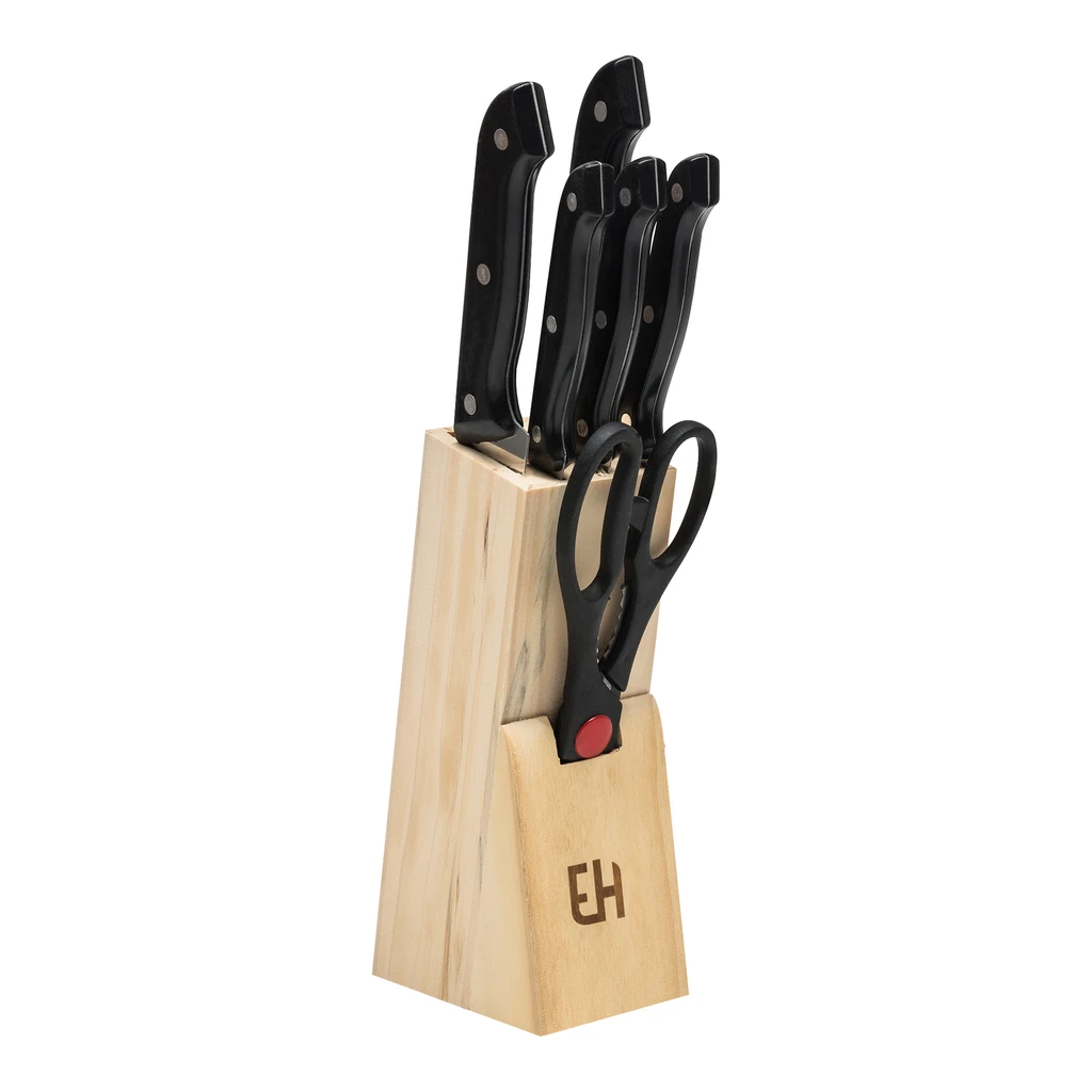• Nože sú bezpečne uložené v drevenom bloku. Minimalizujete tak riziko zranenia.