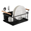 Sušička riadu s drevenými rukoväťami čierna 36x26x16,5 cm