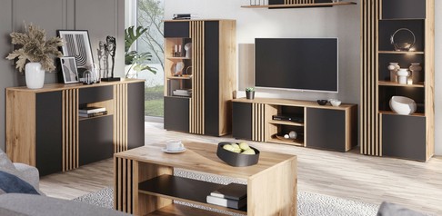 V našom obchode nájdete kolekcie nábytku, ktoré spájajú najnovšie trendy s atraktívnymi cenami. Naša cenovo dostupná ponuka zahŕňa širokú škálu štýlov – od minimalistických škandinávskych súprav cez rustikálne súpravy až po súpravy inšpirované retro estetikou.Každý kus nábytku vyhovuje vysokým nárokom našich zákazníkov. Dbáme na to, aby produkty boli nielen krásne, ale aj praktické a odolné. V našom sortimente nájdete nábytok vyrobený z najkvalitnejších materiálov, ktoré zaručujú dlhú životnosť – bez ohľadu na intenzitu používania. Súpravy obsahujú skrine, skrinky a regály, stoly a stoličky. Jedným slovom: všetko, čo by nemalo chýbať vo vhodne zariadenej obývacej izbe.