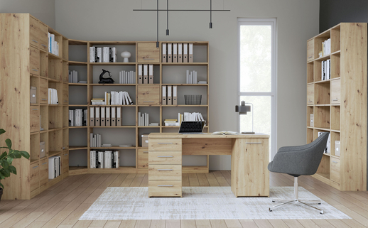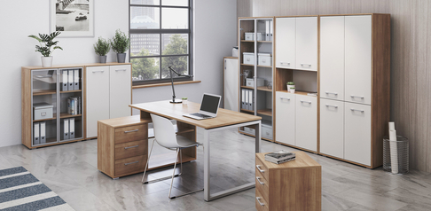 Či už dávate prednosť hotovej zostave skriňového nábytku, alebo si chcete nábytok skompletizovať sami, náš obchod ponúka flexibilné riešenia, ktoré splnia vaše potreby. Hotové nábytkové zostavy sú ideálnym riešením pre tých, ktorí oceňujú konzistenciu a harmóniu dizajnu a chcú si rýchlo a efektívne zariadiť svoj pracovný priestor. U nás na vás čakajú súpravy v rôznych štýloch, od moderných a industriálnych až po tradičné a elegantné. Všetky obsahujú to, čo potrebujete, aby bola vaša kancelária esteticky rafinovaná a elegantne zariadená.Uprednostňujete individuálny prístup? Náš sortiment vám umožní skompletizovať si nábytok sami a vytvoriť si tak jedinečný osobný priestor. Výberom jednotlivých kusov, ako sú písacie stoly, stoličky, skrine alebo regály , môžete každý detail prispôsobiť svojim potrebám a pracovnému štýlu. Poskytujeme širokú škálu možností, takže súpravy aj jednotlivé kusy nábytku sú prispôsobené rôznym potrebám a preferenciám našich zákazníkov.