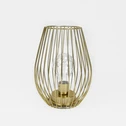 • Tienidlo lampy zhotovené z prepletených drôtov so zlatou povrchovou úpravou je umiestnené na plochom kruhovom podstavci.