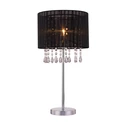 Vyznačuje sa látkovým tienidlom zdobeným akrylovými kryštálmi.Je postavené na jednoduchej kovovej základni s chrómovou povrchovou úpravou.Čierna povrchová úprava tienidla sa hodí do svetlejších miestností.