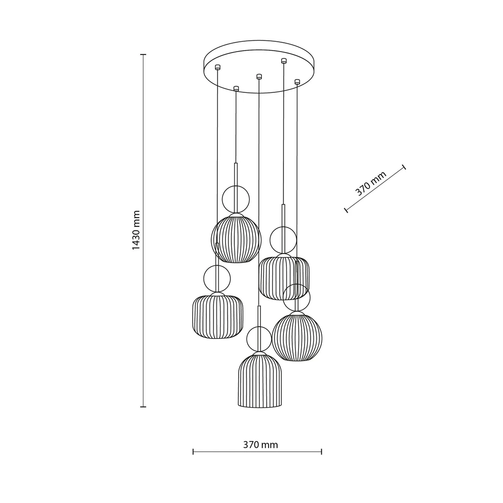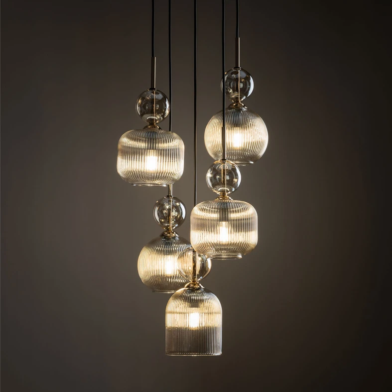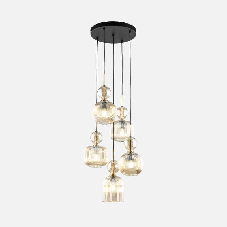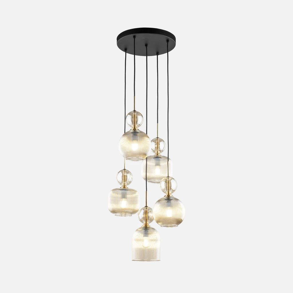 Závesné svietidlo s 5 tienidlami, okrúhla základňa SOPHIA COGNAC